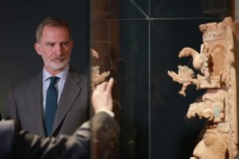 El monarca visitó la exposición La mujer en el México indígena, abierta al público en el Museo Arqueológico