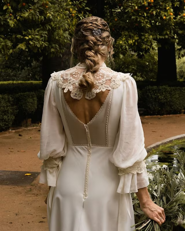 Los tejidos antiguos, encajes y puntillas aportan personalidad única. Muchas piezas se crean a partir de materiales reciclados, lo que las hace irrepetibles.