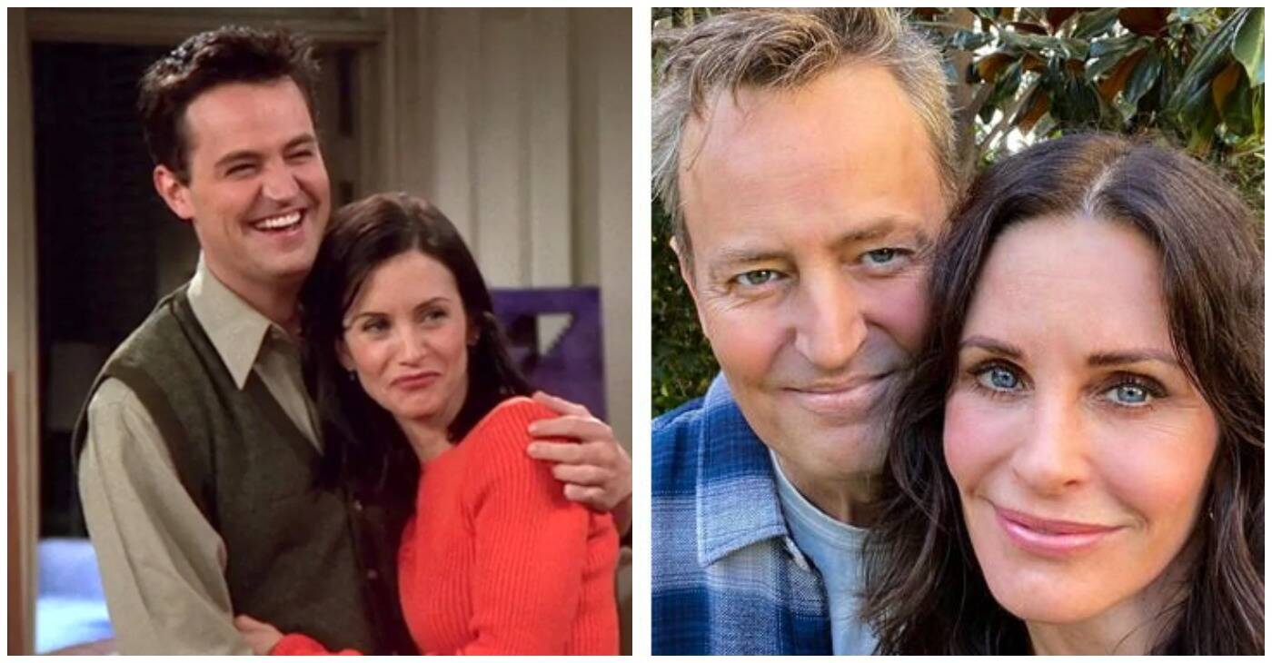 Matthew Perry con Courteney Cox, compañeros de “Friends”.