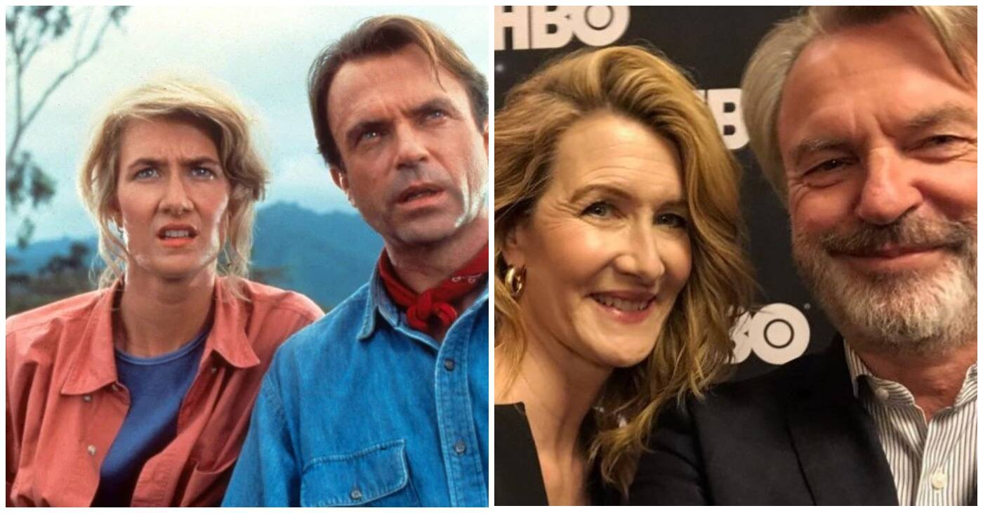Laura Dern con Sam Neill, de “Parque Jurásico”.