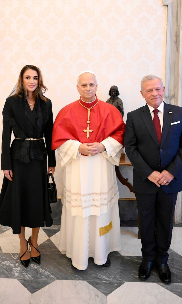 Aunque los reyes no asistieron a la misa de inicio del pontificado de León XIV, celebrada en mayo de 2025 —donde estuvieron representados por el príncipe Ghazi bin Muhammad, primo del monarca y asesor principal para Asuntos Religiosos y Culturales, además de segundo esposo de Miriam Ungría—, sí participaron en la solemne despedida del papa Francisco, con quien mantenían una relación muy cercana.