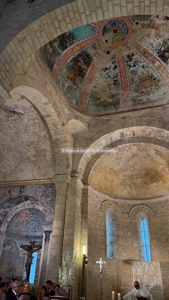 La Basílica de San Martín de Mondoñedo (San Martiño de Mondoñedo en gallego), situada en el municipio de Foz, fue el escenario elegido para la ceremonia religiosa, que reunió a un nutrido grupo de amigos y compañeros del mundo digital. Entre los invitados se encontraban las hermanas Pombo al completo —María y Pablo Castellano, Marta y Luis Zamalloa, Lucía y Álvaro López Huerta—, además de María García de Jaime, Tomás Páramo, Bea Gimeno, Nacho Aragón (hijo de Emilio Aragón) y María Fernández Rubíes, entre muchos otros rostros conocidos.