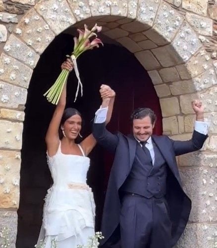 La novia llegó del brazo de su padre y padrino, Sergio Navarro, visiblemente emocionado al acompañar a su hija hasta el altar. Las primeras imágenes del enlace dejan entrever el esperado vestido de la influencer: un diseño sencillo con delicados bordados, acompañado por un original velo y un ramo colorido que atrajo todas las miradas.
