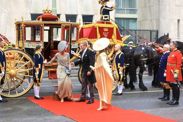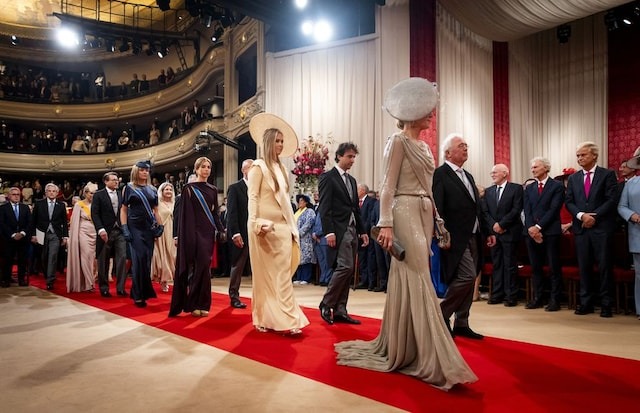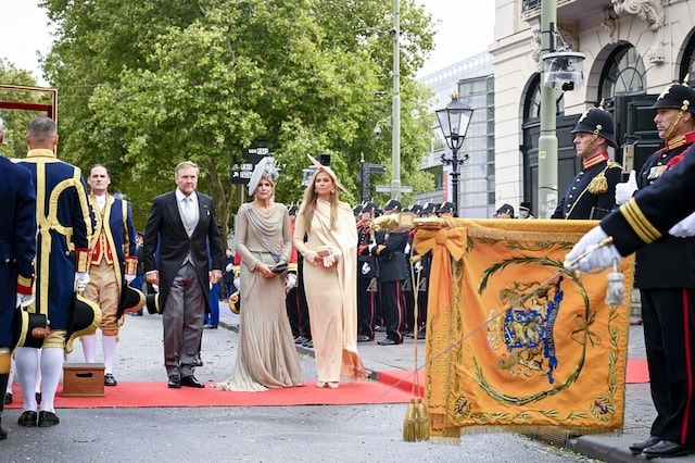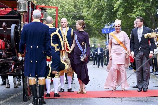Ariane, la menor, debutaba en esta jornada tras cumplir 18 años en abril, lo que le permite ya participar en los actos oficiales. La procesión arrancó a la una del mediodía desde el Palacio Noordeinde y llegó al Teatro Real, encabezada por los reyes Guillermo y Máxima, seguidos por sus hijas. También asistieron el príncipe Constantino y su esposa Laurentien, además de otros miembros de la Casa Real, acompañados por la policía montada, una banda de música y regimientos militares.