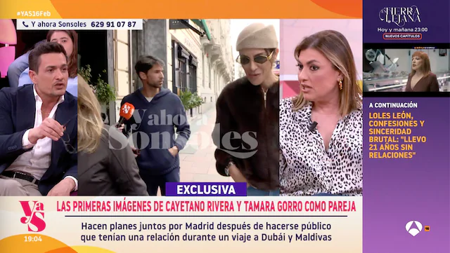 La semana pasada, Pilar Vidal comentaba en Y ahora Sonsoles que Tamara y Cayetano “son dos personas adultas, en el mismo timing”, y que están “más compenetrados de lo que la gente cree”. Aunque matizaba que aún es pronto para hablar de una relación seria —“eso lo da el tiempo”—, las imágenes difundidas por el programa evidencian una conexión más que evidente.