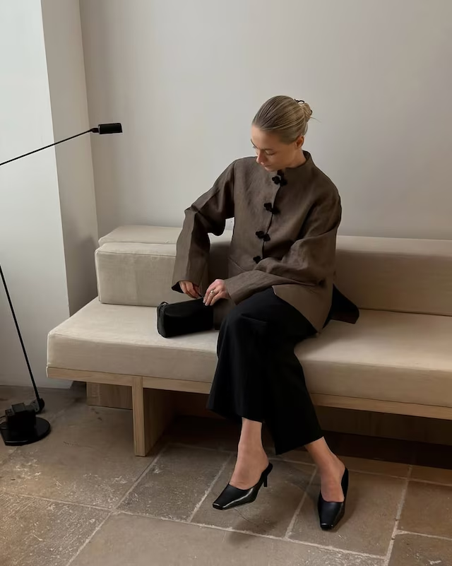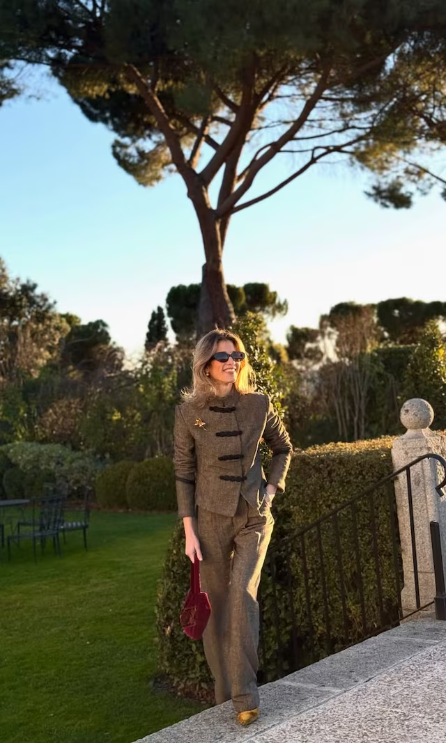 También nuestras creadoras de contenido españolas favoritas se han sumado a la tendencia; entre ellas, Inés de Cominges, que incorpora esta pieza en sus estilismos de día. Los tonos marfil, negro y marrón intenso dominan esta categoría, de modo que incluso quienes apuestan solo por neutros ya han validado la propuesta. El conjunto de chaqueta mandarine style y pantalón a juego de Anoei (450 euros) confirma que es una de las opciones más prácticas y versátiles de la temporada: transmite autoridad sin rigidez y sofisticación sin esfuerzo.