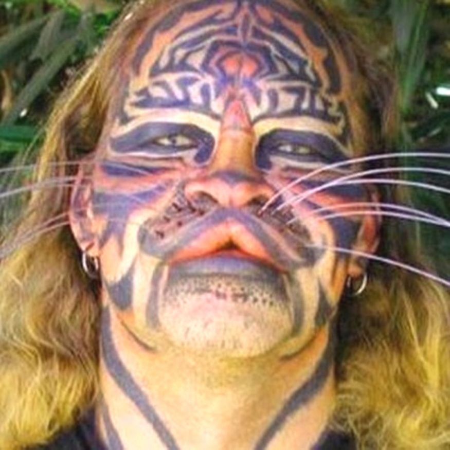 Con el tiempo, su aspecto se volvió completamente irreconocible. Todo su rostro y cuerpo quedaron cubiertos de tatuajes, y los rasgos faciales cambiaron por completo. Cada procedimiento era doloroso y arriesgado, pero Dennis aseguraba que el resultado valía la pena. El hombre adoptó el seudónimo de «Stalking Cat». Este veterano de la Marina de EE. UU. llevaba siempre una cola artificial y lentillas especiales que imitaban los ojos de un tigre.