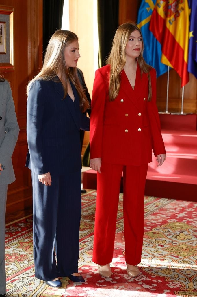Tras el turno de los mejores estudiantes, comenzó la audiencia con las Medallas de Asturias 2025, los Hijos Predilectos y los Hijos Adoptivos. Entre medias se vieron gestos cómplices entre las hermanas: tenían ganas de verse y se notaba. La princesa Leonor se encuentra en la Academia General del Aire de San Javier, en su tercer año de formación castrense, mientras que la infanta Sofía cursa su primer año universitario en Lisboa, en Forward College.