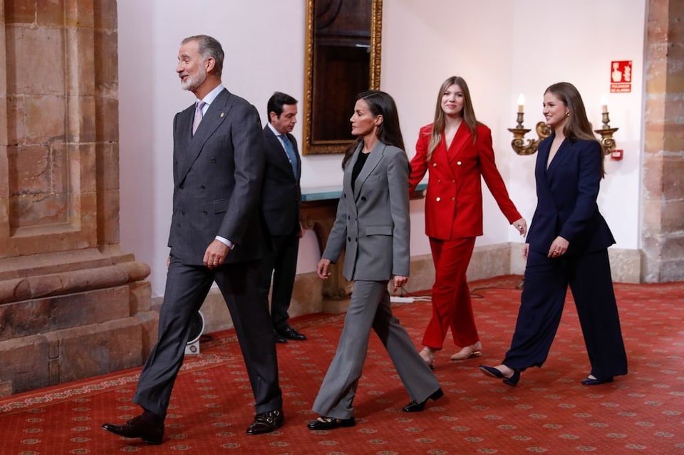 Para la madre de Felipe VI este es uno de los días más importantes del año, y los Premios Princesa de Asturias le hacen especial ilusión: llega por la mañana y regresa a Madrid por la noche, pero no se lo pierde. Acompaña a los Reyes y a sus nietas en la entrega de galardones y acude al multitudinario cóctel posterior a la ceremonia —siempre con producto asturiano—, tras el cual vuelve a la capital.