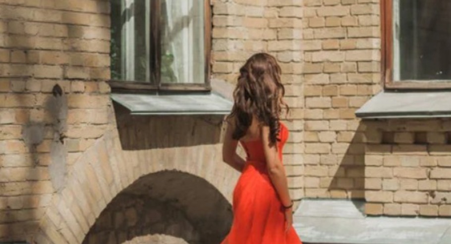 Joven, con un vestido rojo, los labios pintados con esmero; sus tacones resonaban en el suelo como filo de cuchillo.