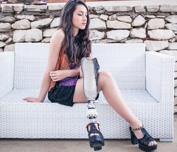 A los 13 años, Chiara quedó discapacitada (le falta la pierna izquierda hasta la mitad de la pantorrilla). Fue atropellada por un coche y tuvieron que amputarle la extremidad. Pero incluso después de eso, la joven no renunció a su viejo sueño de convertirse en modelo. Gracias a su prótesis, puede caminar con cualquier tipo de calzado, incluso con tacones altos.