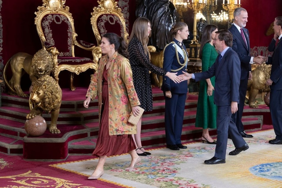 Madrid amaneció este 12 de octubre con ese cielo azul —ligeramente velado— reservado para las grandes solemnidades. Las tribunas de la Castellana volvieron a llenarse de uniformes y saludos medidos: el desfile de la Fiesta Nacional transcurrió entre los vuelos de la Patrulla Águila y la expectación por el reencuentro de la princesa Leonor y la infanta Sofía, cinco años después de su última coincidencia en este acto. Más allá del protocolo, una figura atrajo discretamente miradas tanto entre el público como, horas después, en los salones del Palacio Real durante el besamanos: Teresa Urquijo, esposa del alcalde de Madrid, José Luis Martínez-Almeida.