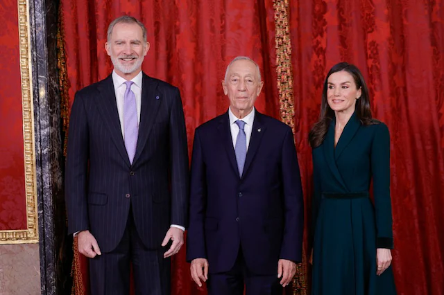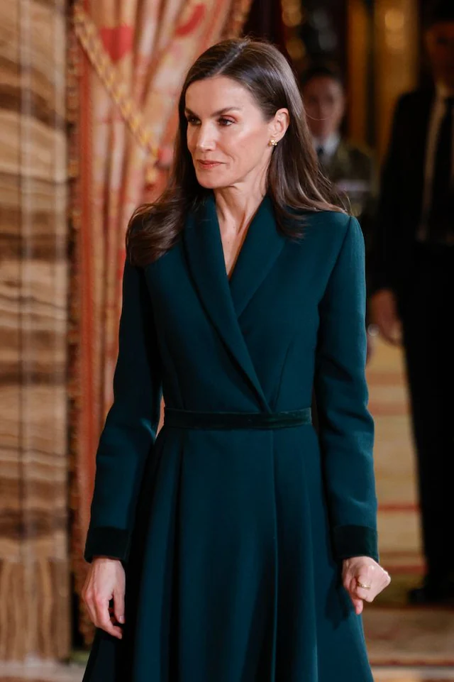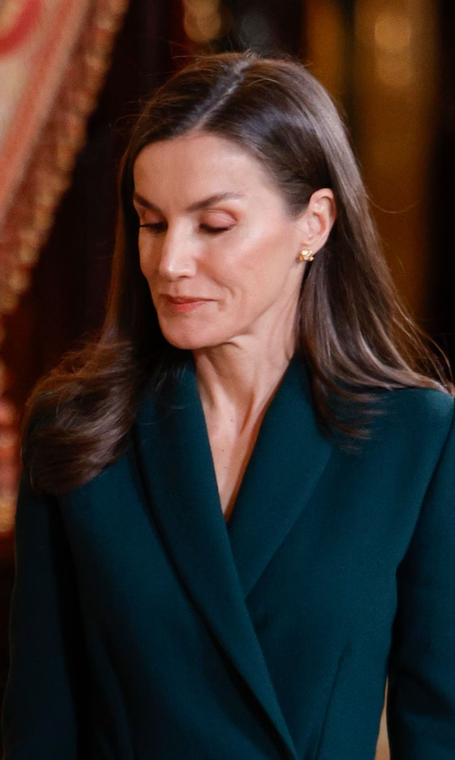 Los reyes de España han puesto el broche final a su agenda semanal con una cita muy esperada: el encuentro con el presidente de la República de Portugal, Marcelo Rebelo de Sousa. Tras dos cancelaciones anteriores, finalmente fue recibido por el rey Felipe VI en el Palacio Real de Madrid, donde ambos compartieron un almuerzo al que también asistió la reina Letizia Ortiz. Para la ocasión, Su Majestad recuperó uno de sus vestidos más sofisticados: el diseño verde oscuro que llevó en el servicio religioso de acción de gracias por el duque de Edimburgo, celebrado el 19 de marzo de 2022. Sin embargo, más allá del estilismo, lo que realmente acaparó miradas fue su maquillaje ultraluminoso.