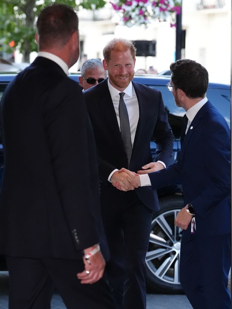 A su llegada al hotel Royal Lancaster de Londres, el hermano menor del príncipe Guillermo se mostró relajado y sonriente. Fue recibido por representantes de la organización y posó ante los medios antes de mantener un entrañable encuentro con varios niños beneficiarios de la entidad, escuchando con atención sus historias.