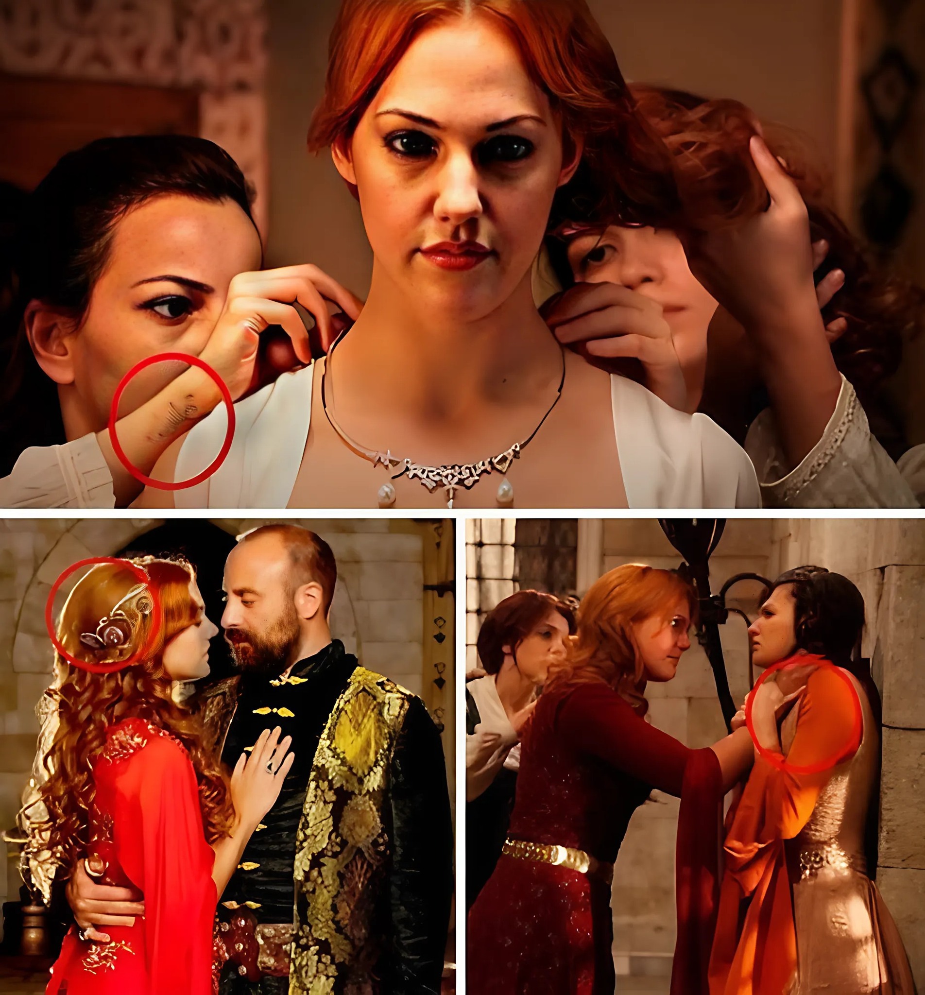 Seguramente notaste que las mujeres, en la mayoría de los casos, vestían lujosos vestidos que hoy en día suelen usarse exclusivamente en ocasiones festivas. Roxelana, en esta situación, fue quien tuvo la mayor variedad de este tipo de atuendos. Es sorprendente, pero a los espectadores les daba completamente igual que muchos de los looks de Roxelana no correspondieran en absoluto a aquella época, ya que en la Edad Media la gente vestía de una manera totalmente distinta. En la serie se habla del Imperio otomano, cuando las mujeres debían llevar ropa muy cerrada para no atraer la atención de los demás. Además, ninguna mujer tenía derecho a mostrar el escote, incluso si se trataba de una persona de alto estatus. Asimismo, las mujeres debían vestir prendas muy cubiertas. Sin embargo, lo que más me confundía en esta situación era que algunas actrices llevaban las mismas joyas, como si las compartieran entre ellas. ¿No te parece sospechoso?