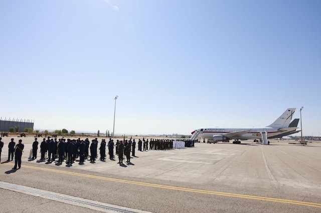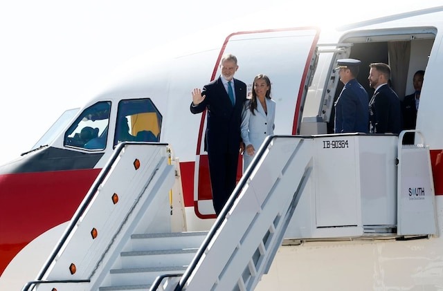 Los Reyes partieron desde el aeropuerto Adolfo Suárez Madrid-Barajas, donde recibieron una despedida con honores en el pabellón de Estado de la terminal T-4. Tras saludar a las autoridades presentes, se entonó el himno nacional antes del embarque.
