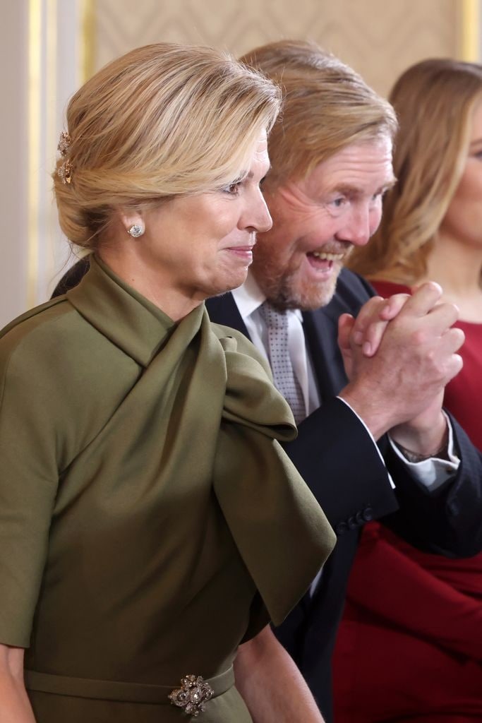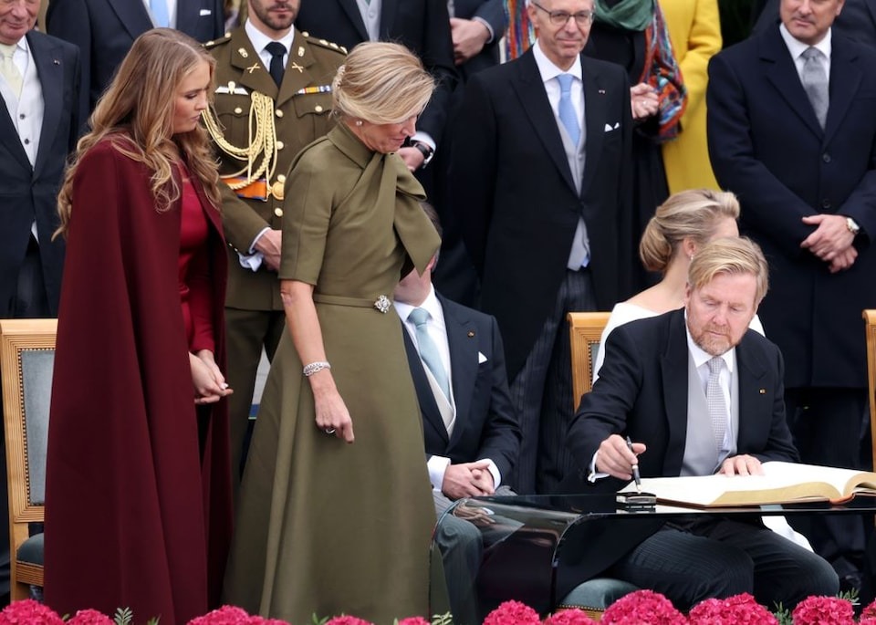 Entre los invitados más esperados estuvieron Guillermo, Máxima y Amalia de Holanda. La reina Máxima, de verde y con abrigo capa, muy en sintonía con el diseño elegido por su hija mayor.