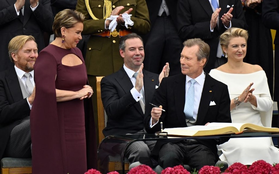 La ceremonia de abdicación ha sido breve y sencilla, pero cargada de gestos y emoción. El gran duque saliente firmó su renuncia ante su familia, miembros del Gobierno, cuatro reyes y dos princesas herederas. Sus cinco hijos y sus parejas también fueron testigos de este momento histórico.