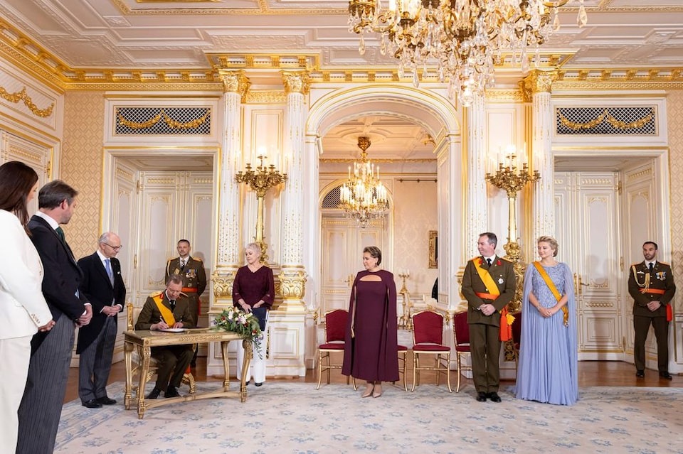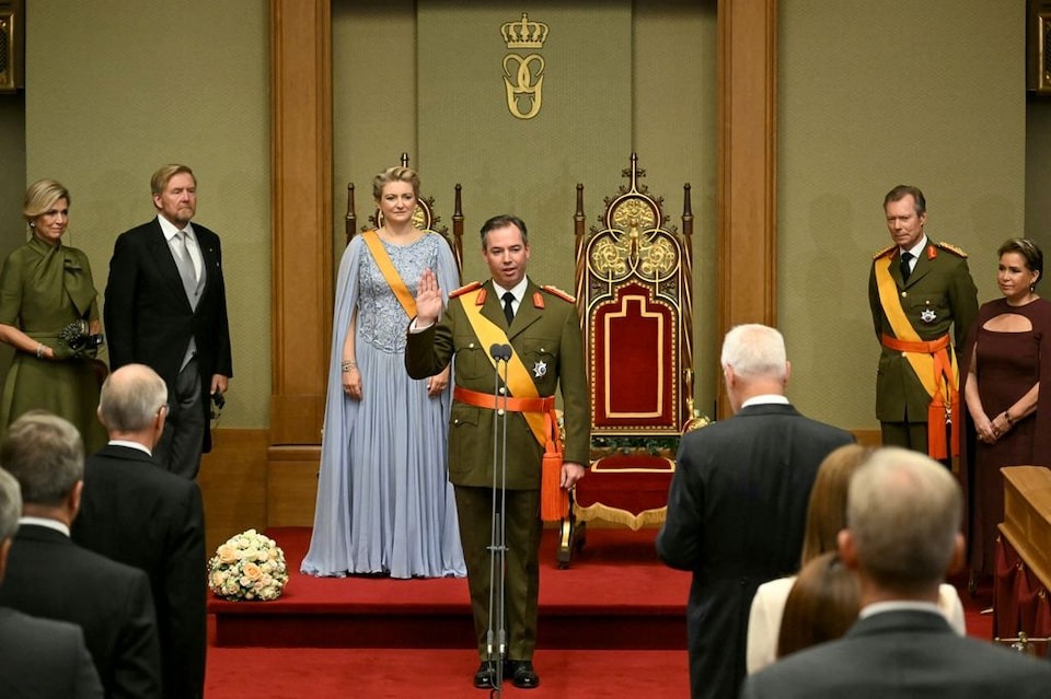El príncipe Guillermo presta juramento y se convierte en el nuevo monarca de Luxemburgo ante su esposa, sus padres, su hijo mayor, los reyes de Bélgica y de Holanda, y dos princesas herederas.