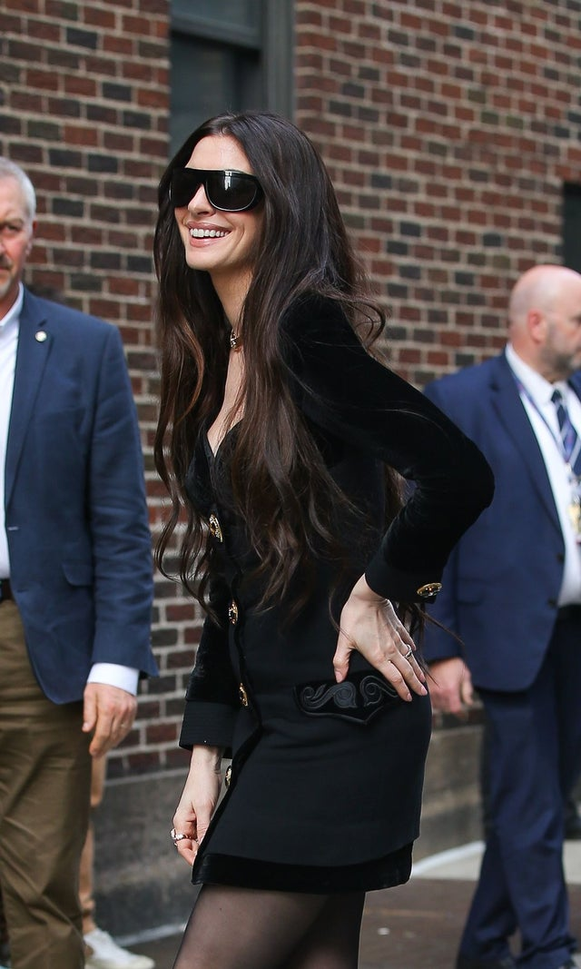 Ícono de elegancia en transformación: Anne Hathaway reaparece en Nueva York con una melena XXL y sin el icónico flequillo de Andy Sachs