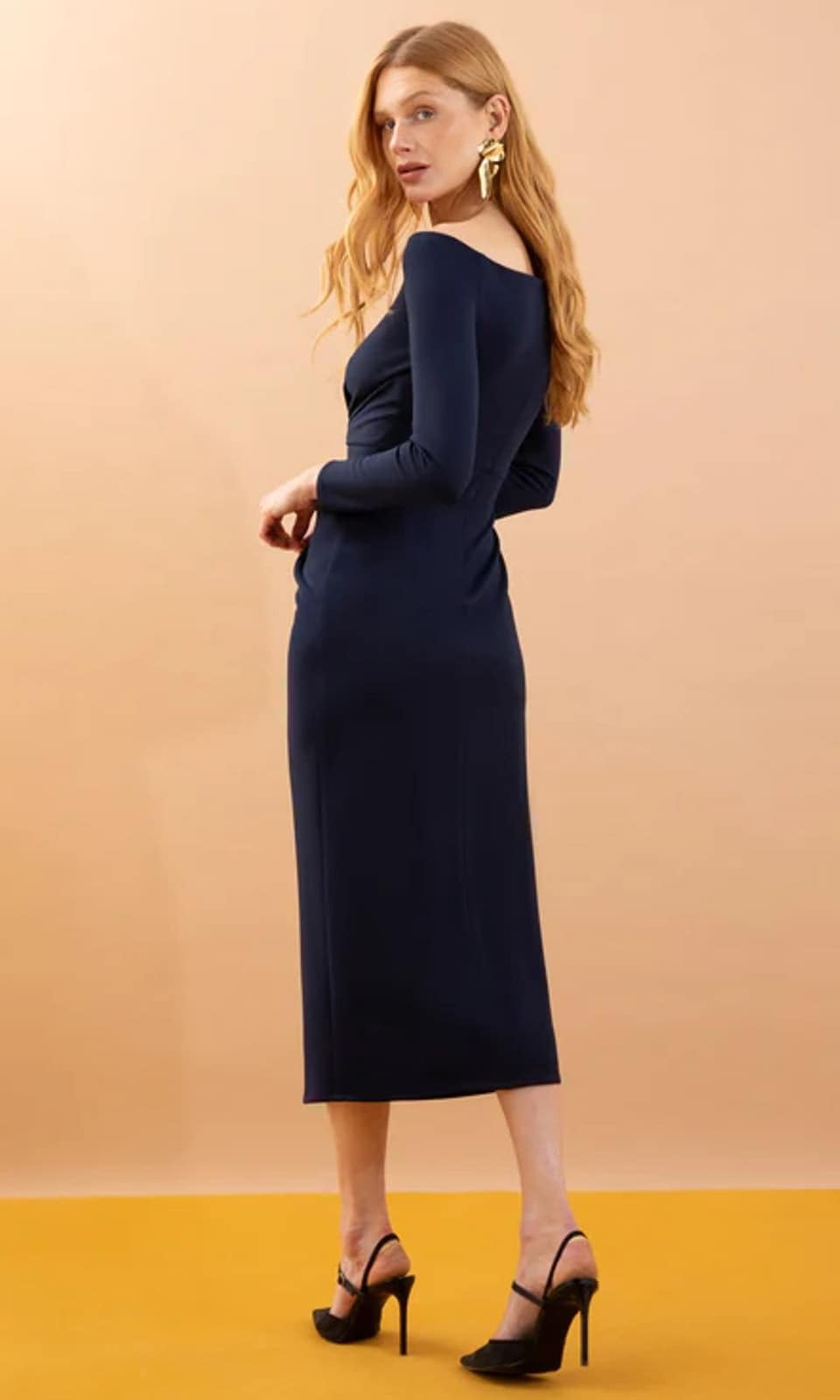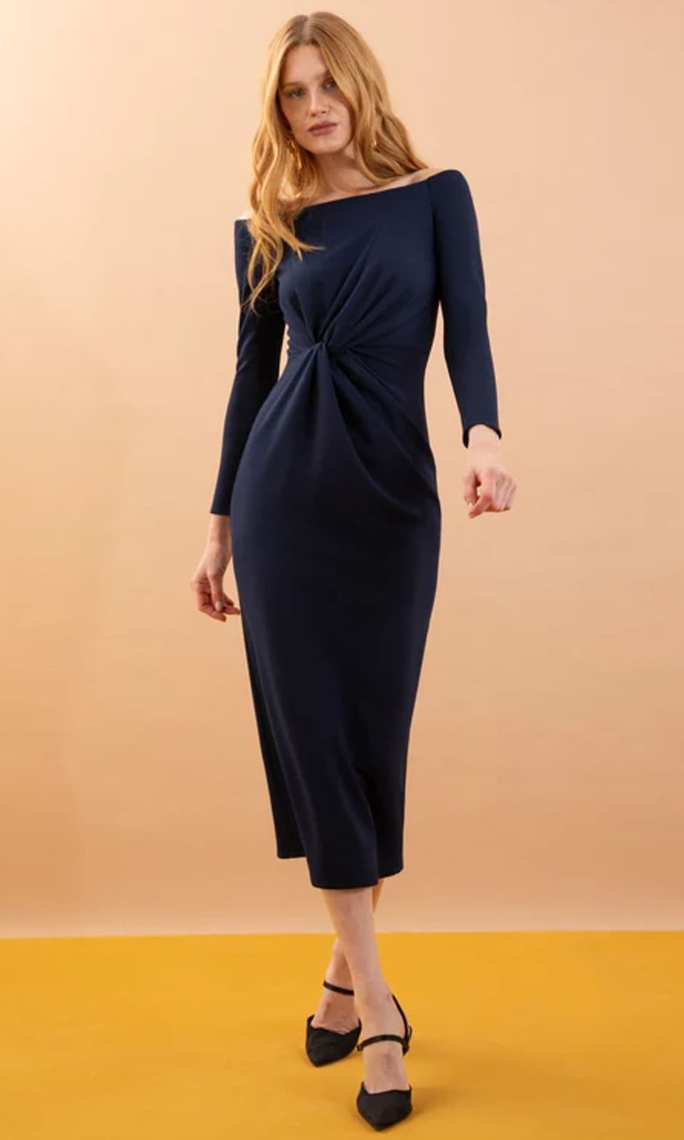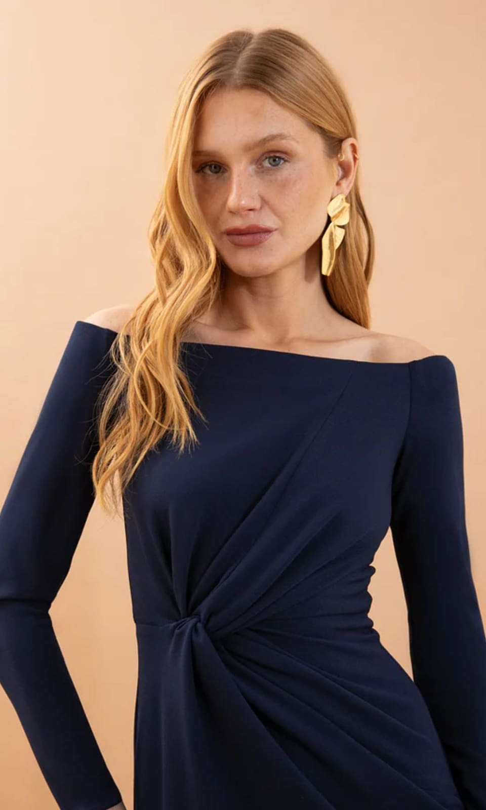 La presidenta de la Comunidad de Madrid estrenó un vestido de punto con escote Bardot —dejando los hombros al descubierto—, un corte muy en auge para bodas este otoño. Además, incorporaba manga larga, perfecta para los aproximadamente 18 ºC de la capital, y un nudo drapeado en un lateral a la altura de la cintura que estiliza la silueta. En concreto, esta creación, bautizada como modelo Rigel (125 euros), pertenece a la nueva colección de la firma española Victoria. Lo combinó con salones nude de corte clásico y pendientes tipo botón.