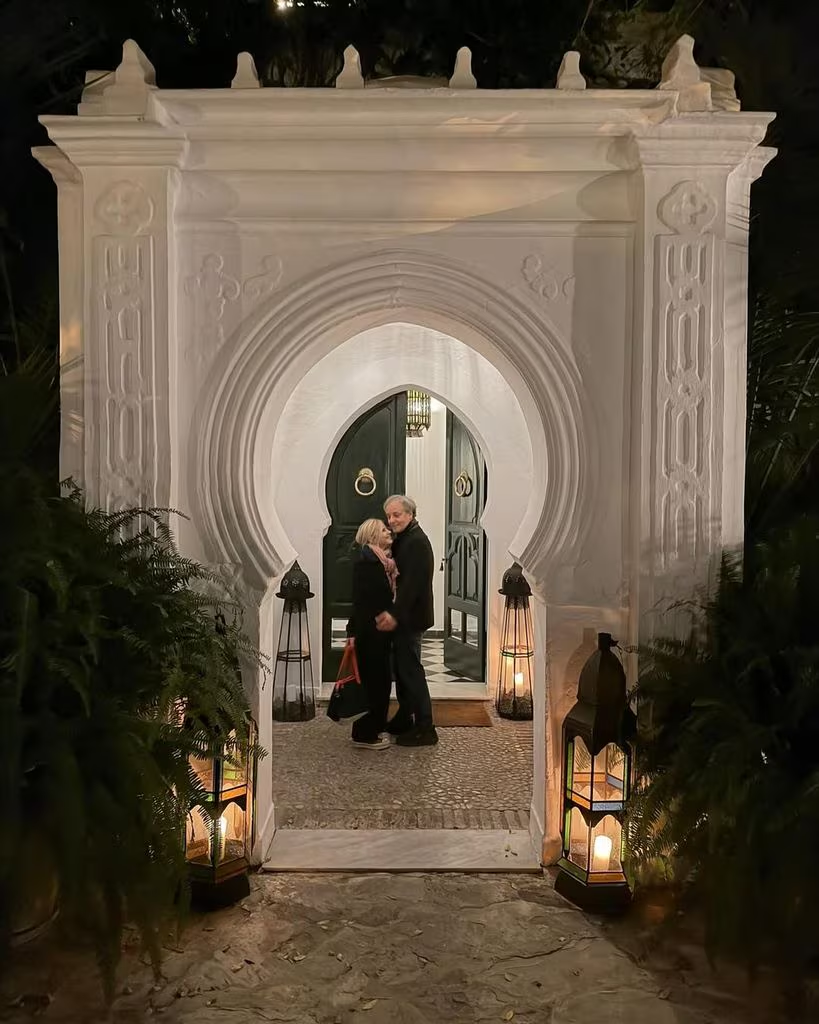 La duquesa de Montoro y el director general y presidente de Global Talent Services se alojaron en un lugar tan simbólico como exclusivo: Villa Mabrouka, la que fuera residencia de Yves Saint Laurent y del empresario y mecenas Pierre Bergé. Este pequeño paraíso se ha convertido hoy en un delicado hotel boutique, un oasis de elegancia entre jardines bucólicos con vistas al Mediterráneo, a escasos pasos del bullicio de la medina y la kasbah de Tánger. Un rincón cargado de historia y sofisticación que ha seducido a personalidades de todas las épocas, entre ellas el escritor Ernest Hemingway o el novelista Jack Kerouac.