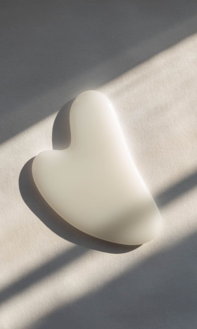 Cada mañana, Cindy incluye el gua sha en su rutina facial. Se trata de una técnica tradicional china que consiste en deslizar una herramienta sobre la piel para activar la circulación, favorecer el drenaje y relajar los músculos faciales.