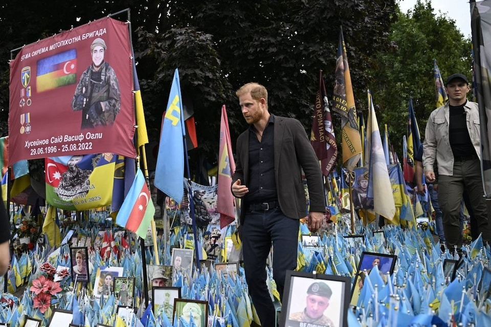Las imágenes del príncipe Harry en Kiev visitando el memorial de los soldados ucranianos