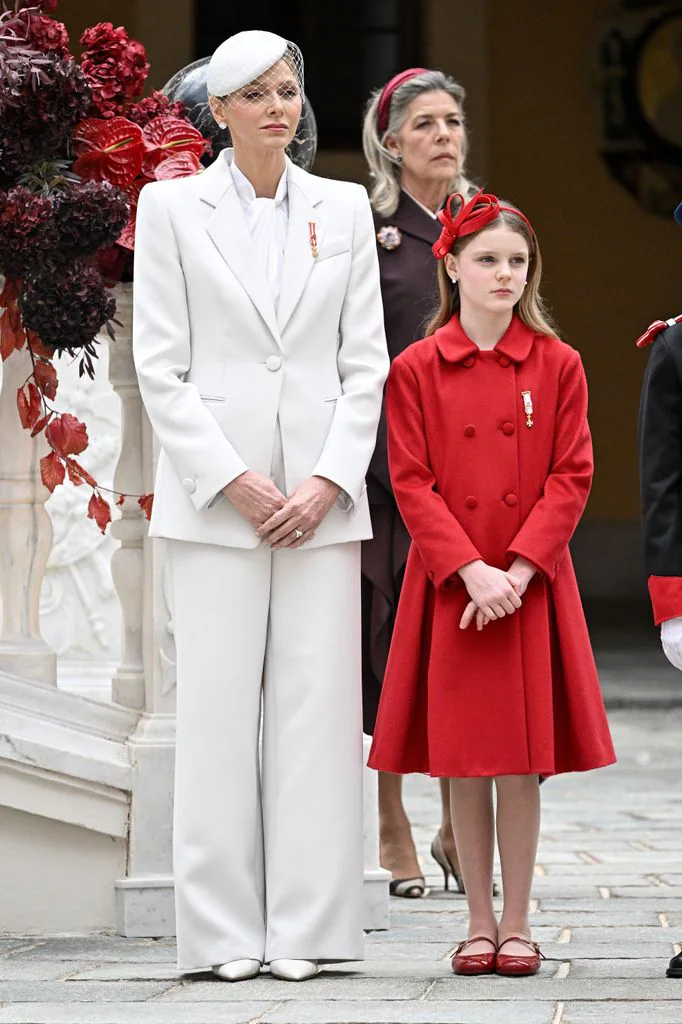 Charlene de Mónaco ha hecho del blanco en 2025 un sinónimo de minimalismo arquitectónico. En el Día Nacional del Principado, lució un traje de chaqueta blanco impoluto durante los actos diurnos y un vestido de gala por la noche, reservando todo el protagonismo para la icónica tiara Écume de Diamants, una joya escultórica que evoca la espuma del mar.
