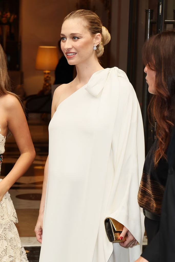 En Roma, durante el desfile Dior Crucero 2026, volvió a apostar por esta tonalidad con un vestido etéreo de un solo hombro, reafirmando su estrecha relación con la maison y con el blanco luminoso.