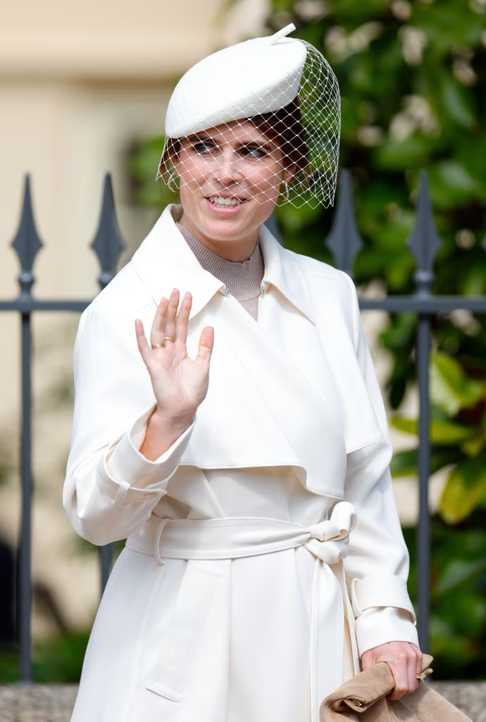 Eugenia de York también se ha sumado en 2025 a la corriente del blanco sereno que anticipa Cloud Dancer, haciéndolo desde un enfoque funcional, elegante y muy británico. Durante la tradicional misa de Pascua en la capilla de San Jorge del Castillo de Windsor, la princesa destacó con un estilismo en tonos neutros que apostaba claramente por el blanco como hilo conductor.