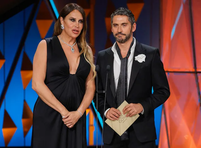 Karla Sofía Gascón protagonizó uno de los momentos más divertidos al romperse el tacón en una alcantarilla y quitarse los zapatos en plena alfombra roja. Entre risas, comentó que no quería caminar “como en Piratas del Caribe”. Más tarde entregó un premio junto a Paco León.