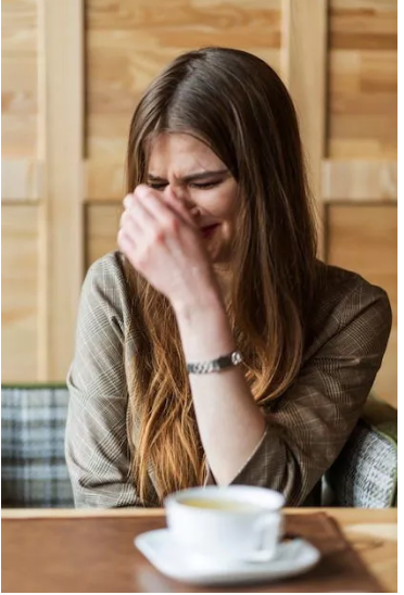 Ella estaba sentada sola en una mesa en la esquina, con la cabeza gacha y lágrimas corriendo por sus mejillas.