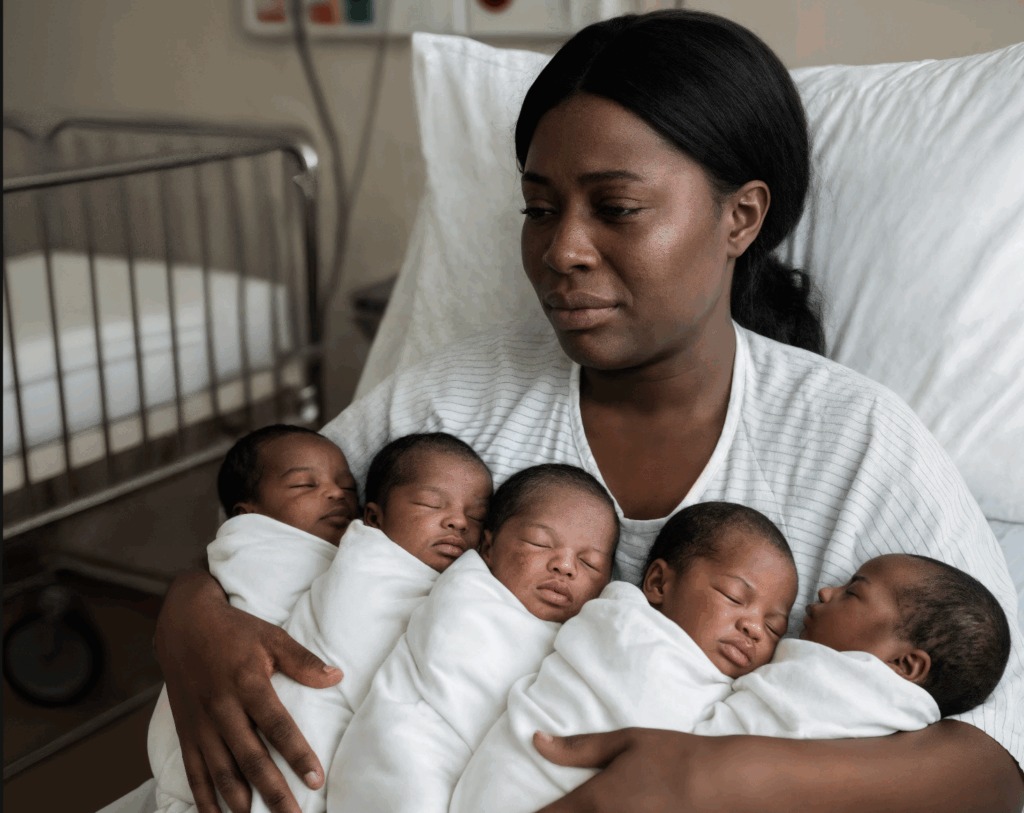 El ala de maternidad estaba llena de ruido: cinco pequeñas voces lloraban al mismo tiempo. La joven madre, agotada pero feliz, sonreía entre lágrimas mientras miraba a sus recién nacidos quintillizos. Eran diminutos, frágiles, pero perfectos.