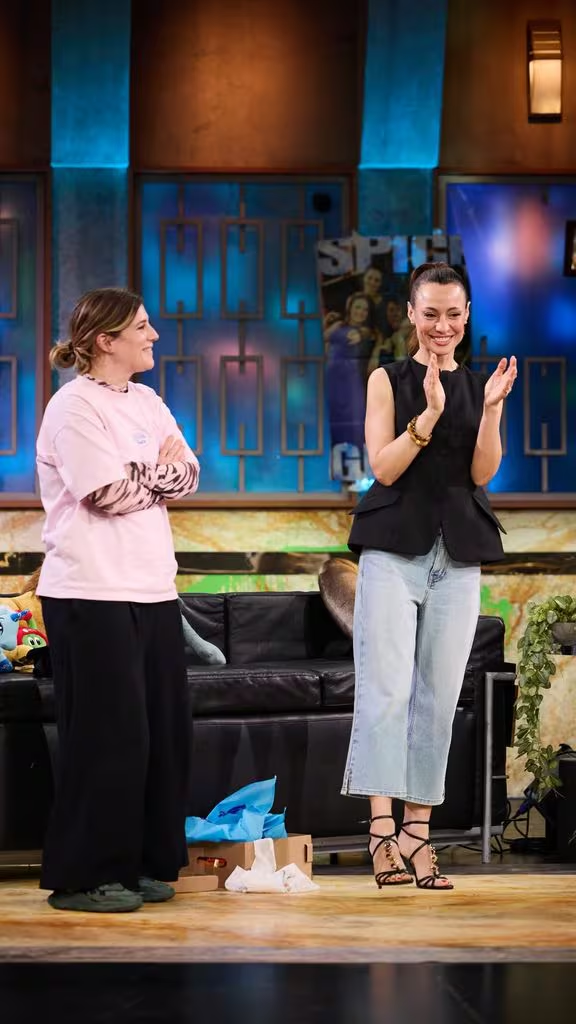 El ambiente distendido dio paso a momentos espontáneos y divertidos: Natalia imitó un acento argentino, mientras Ángela habló en catalán, generando complicidad con el público. Todo ello preparó el terreno para uno de los momentos más esperados —y a la vez incómodos— del programa: las preguntas clásicas sobre dinero y vida íntima.
