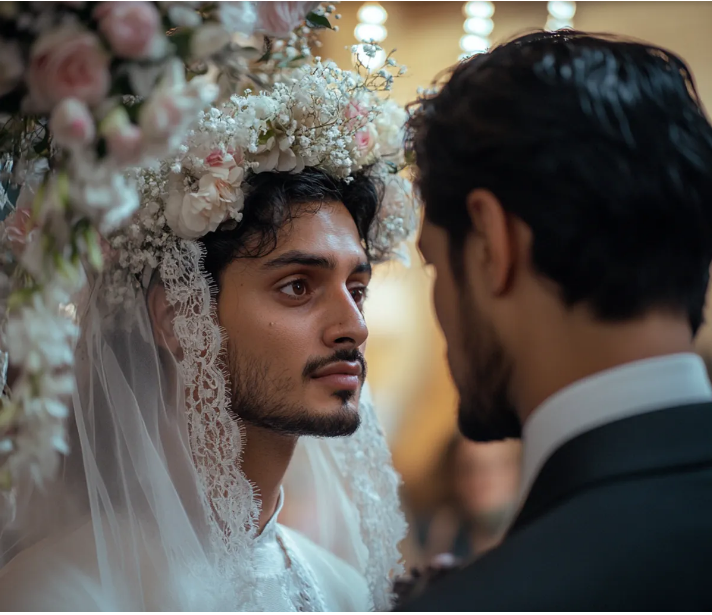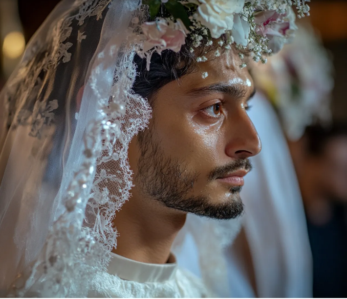 El caos se apoderó de la sala. Los invitados hablaban entre ellos, hacían preguntas, tratando de entender lo que acababa de pasar. Algunos se levantaron, dispuestos a marcharse, mientras que otros miraban perplejos al hombre vestido de novia, que seguía de pie, orgulloso, junto al altar.