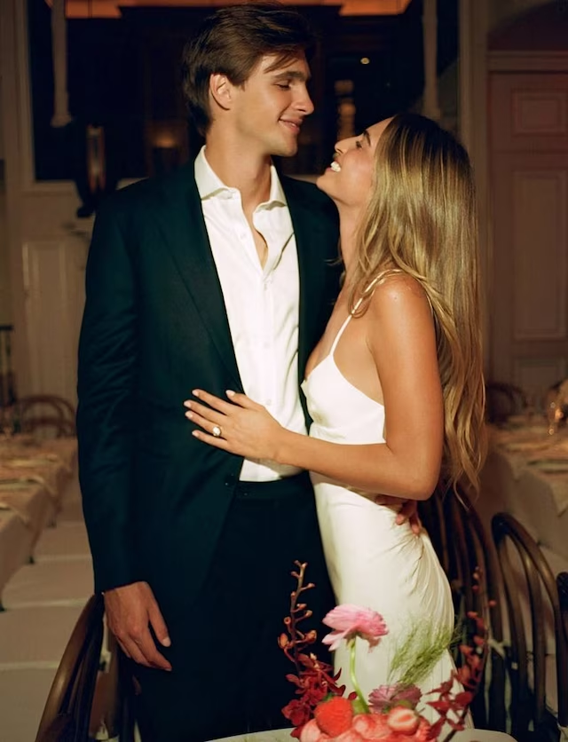 Pero fueron las imágenes posteriores las que terminaron de captar la atención de sus seguidores y de los cronistas sociales. En ellas, Talita posa radiante con un vestido blanco impoluto junto a una ventana, mirando con ternura a Rocco. En otra, se les ve compartiendo una cena íntima, mientras el nieto de Gian Franco Brignone —el visionario creador del exclusivo refugio de Costa Careyes— rodea con el brazo los hombros de su prometida. Ante el despliegue de blanco y la elegancia de las escenas, muchos se preguntaron lo mismo: ¿se han dado ya el “sí, quiero” en la más estricta intimidad?